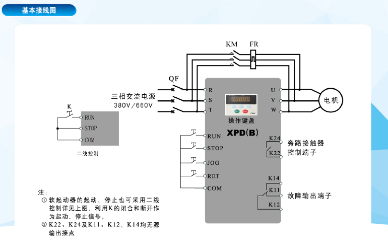 保護功能 XPD系列B型軟起動器對電動機的起動有缺相、過載、過流及起動時間超限等保護功能。